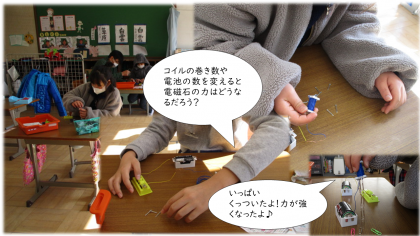 理科の学習では,電磁石について実験をしながら学習をしました。条件を変えると,変化する電磁石の力がよく分かりました。