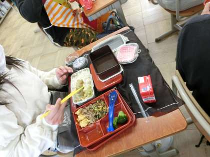 ・中学校給食は小学校で食べてきたお弁当に収まり切りませんでした。中学校へ成長すると食べる量がかわるのを実感できました。