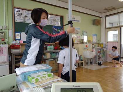 今日は身体計測と視力検査がありました。「上,下…。」視力検査も随分慣れてきました。また,身体計測も1年生の頃より成長しているようでみんな嬉しそうです。