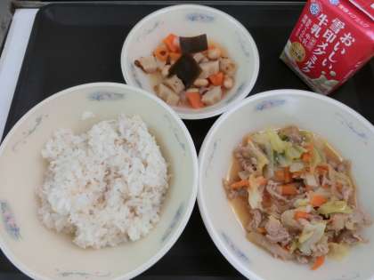 ・豚肉とキャベツのみそいために京都府産で地産地消のキャベツが使われていました。シャキシャキしておいしかったです。