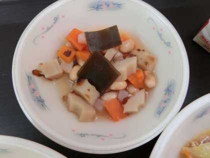・五目煮豆のこんぶのだしがでていて,汁がとってもおいしかったです。
