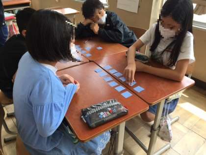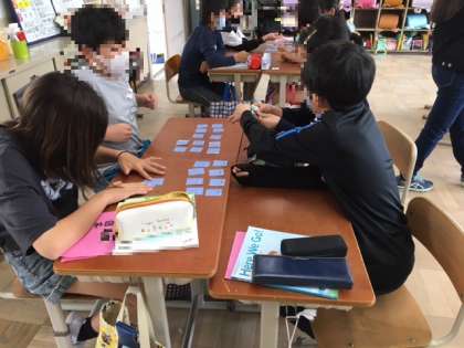 「In spring,we have hanami.」の表現を身に付けるため,カードマッチングゲームをしました。