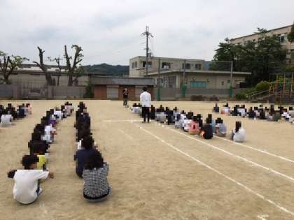 家庭科室から出火した,という想定で,全校で避難訓練をしました。命を守る大切な学習です。みんな真剣に取り組んでいました。