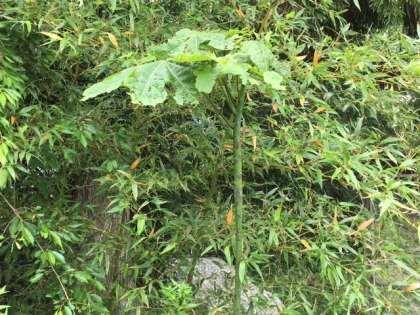 修学旅行先の広島・平和記念資料館でいただいたアオギリが,初夏の日差しを浴びて,大きく育っています。