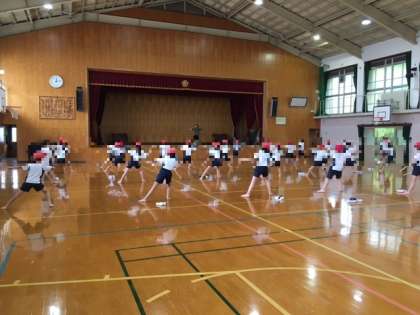 体育館にて,和太鼓の練習をしました。この時間は,踊りの練習でした。