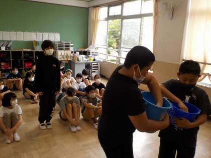 掃除の仕方を演技で伝えました。どんな風に用具を使うのか,わかりやすく演じました。毎日の掃除時間に,6年生が「だまって」「いっしょうけんめい」「じかんまで」掃除をやり切る姿を見せていけば,大原野小学校はどんどん美しくなります!!進んで掃除に取り組んでいこう。「ありがとう6年生」って言われる最高学年・・・かっこいいです!