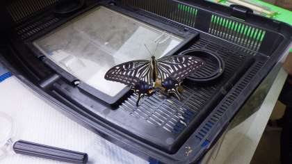 子たちが育てていたチョウの幼虫たちが,