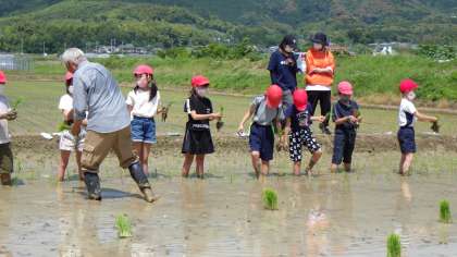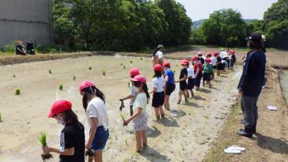 田んぼの泥の感触が怖くて,なかなか入れない子もいましたが,