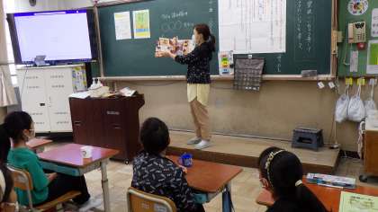 3年1組には,栄養教諭の先生が来てくれました。