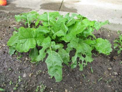 ・土が湿っていたので、少しだけ水やりをしました。しっかり育っているかぶの葉と食べられている株の葉がありました。