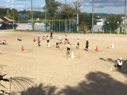 運動場での練習も白熱しました。5年生のみんなは「アツアツ」です!