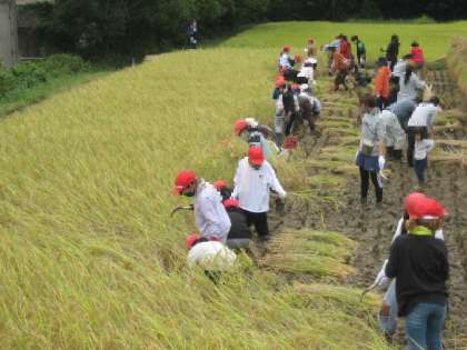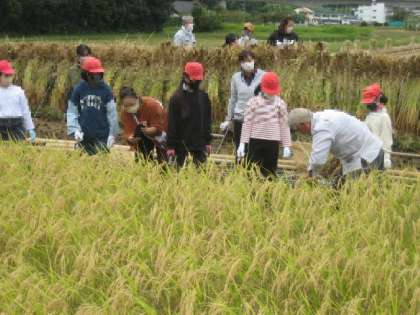 3校時、稲刈り体験をしました。6月に植えた稲が大きく実り、子ども達もアツアツに稲刈りをしました。25日(火)は、脱穀体験をします。