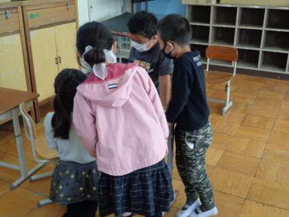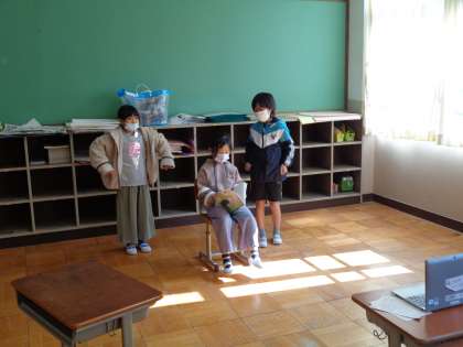 自分たちが選んだ場面を,演じながら撮影し,納得がいくまで何回も撮り続けました。回数を重ねる度に演技が大きくなったり,音読の声がはっきりしてきたりと改善が見られ,素敵な音読劇ができ上がりました。