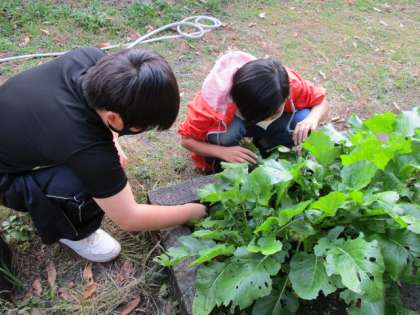 ・かぶの葉が、食べられていました。かぶが、かなり育っていました。美味しくさらに育ってほしいです。