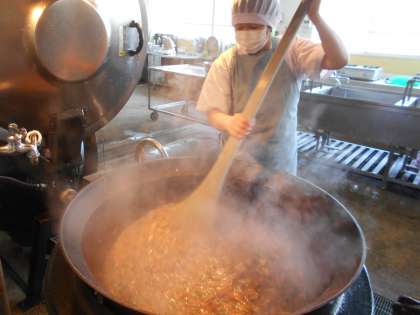 けずりぶしでとっただし汁で煮た後に野菜と一緒に片栗粉でとじてつくります。