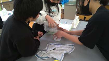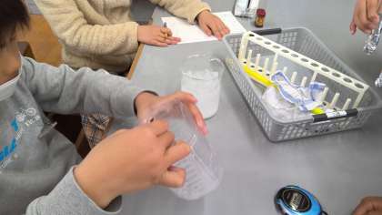 温度によって変化してゆく水の様子を実験しました。役割分担をしながら正しく実験することができたので、水の変化に驚いている様子でした。実験はもちろんですが、観察しながらその結果を折れ線グラフにまとめることができ、成長を感じることができました。