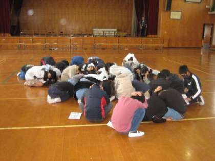 6年生は卒業式練習でしたが、9時35分の警報と共に、訓練に参加しました。体育館だったので、全員フロアの中央に集まり、低い姿勢で頭を守りました。