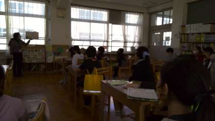 今回も図書館司書の先生に絵本を読んでいただきました。本が大好きな子ども達は、毎週ある図書の時間が大好きで、たくさんの本を読むことができる1年間になりました。今年度は今日で終わりですが、来年度もたくさんの本を読むことで、知識や想像力を広げてほしいと思います