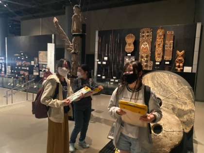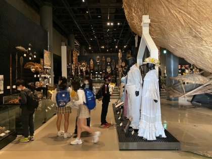 万博記念公園に到着し、国立民族学博物館で世界の文化について見学学習をしました。