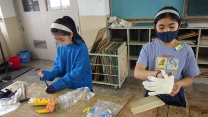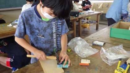 集中して、曲がらないように慎重に、くぎを打ち込んでいきます。