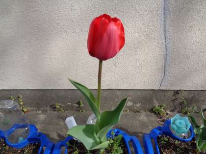 春休みに入りましたが、みなさん元気にしていますか?さて、学校ではみんなが育てていたチューリップの花が咲きました!鮮やかな赤色です。チューリップは一足先に2年生を迎えました。みんなも2年生を迎える準備、始めていますか。