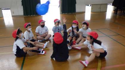 体ほぐしのうんどうあそびで、風船バレーをしました。