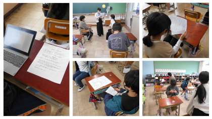 6年生は修学旅行に向けて、言葉や出し物の練習をしていました。長い言葉の練習を一人でぶつぶつ言って練習する人、友だちと聞きあって練習する人…。お土産を考える人もいて。とても楽しみな修学旅行まで後2日。みんなでよい思い出が作れますように。