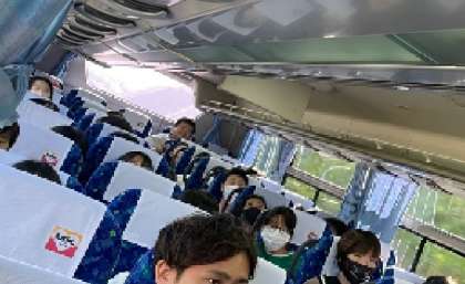 バスの中の様子です。高速道路を5時間走って、広島に行きます。長時間ですので、ビデオ鑑賞しながら、平和学習の事前学習をしています。途中、サービスエリアで休憩をはさむ予定です。運転手さん、よろしくお願いします!