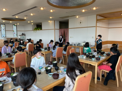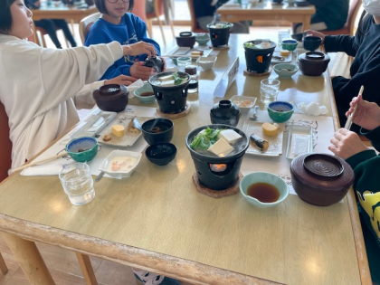 みんな元気に朝食を食べています。朝から豪華な食事に子供たちのテンションも上がっています。しっかりと食べてこれからの活動に備えます。