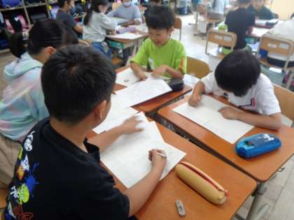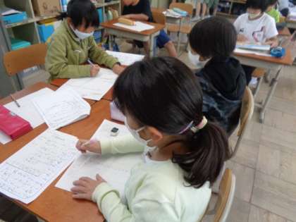 国語の学習で、自分のすきなことやもの、学校や家出の出来事、今、がんばっていることなど、友達に知らせたいことを決めて、文章に書き表し、グループで交流会をしました。