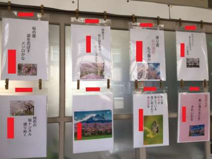 6年生の教室前に、国語の時間に作った俳句が掲示してありました。