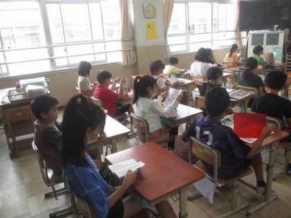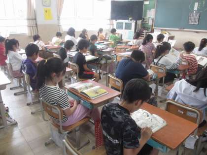先生がいなくても、自分たちで静かに朝読書をしている4年1組の仲間たち。