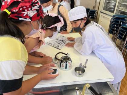 初めての調理実習でワクワクいっぱいの5年生たちは、その気持ちを抑えながら、「安全に」そして「丁寧に」お茶を入れることができました。