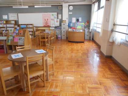 先日校長先生と図書館司書教諭の山下先生とで学校図書館の模様替えをしていただきました。机や書架の配置が換わって広々と明るく感じます。