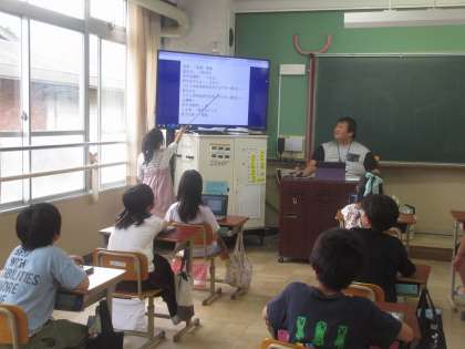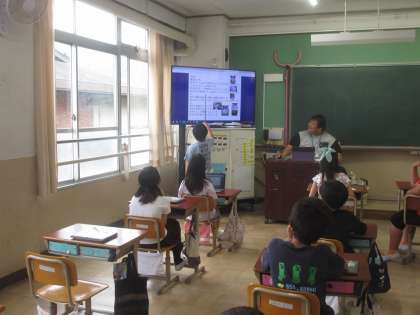 コンピュータクラブでは、コンピュータを使って自己紹介のプレゼン資料を作成し、5、6年生の前で伝えました。少し緊張する様子でしたが、自分で作った世界に一つの資料をテレビに映して見せて、5年生、6年生に伝えることができました!!!