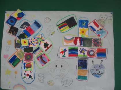 友達とアイデアと考えを出し合い、試行錯誤しながら創りあげた作品は、どれも愛にあふれていました。教室にかざると、教室も32人の愛に包まれ、とっても居心地よくなっています!あなた達の考えた世界に一つの作品は最高傑作です!!絆がどんどん深まっているよ。