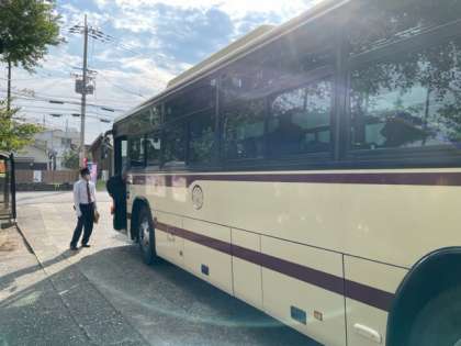 出発式を終え、子ども達はバスに乗り、花背山の家に向けて元気に出発しました。