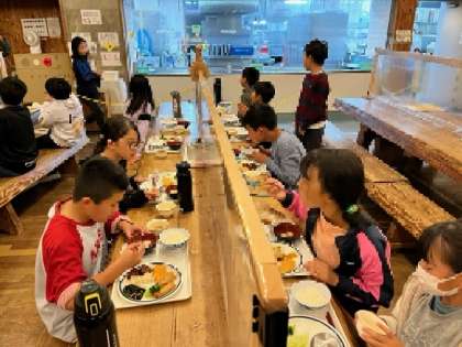 スコアオリエンテーリングでたくさん動いた子ども達は、お風呂で汗を流して晩御飯を食べました!おかわりをたくさんして力をたくさん蓄えています!