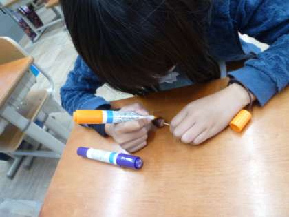 絵をかいて、世界に1つのどんぐりごまが完成!