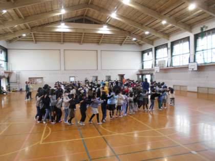 じゃんけんを繰り返し、いろんな学年の友達とつながっていきます。そして最後には大原野小学校のみんなが1つにつながりました。