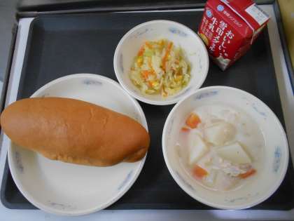 いつものクリームシチューは牛乳から作られる脱脂粉乳を使っていますが、今回は豆乳を投入!