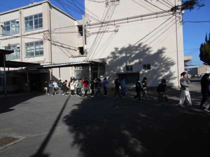 2時間目は、京都府南部に大きな地震が発生し、それによって理科室より出火したとの想定での避難訓練でした。1月1日には能登半島で大きな地震が発生し、被害が出ています。また、今日は今から29年前に「阪神・淡路大震災」が起きた日でもあります。