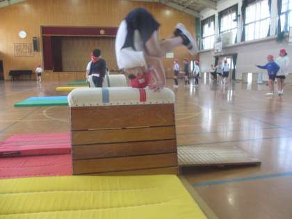 体育科「跳び箱運動」の学習で、台上前転に挑戦し、跳ぶことができるようになりました!!
