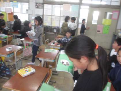 自ら友達の教科者やノートを配ってくれている仲間がたくさんいます。あなた達のおかげで、授業が気持ちよくスタートできます。かっこいい姿、美しいです!!