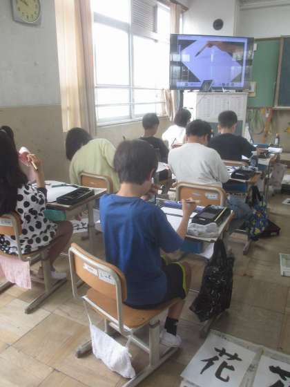 「とめ」「おれ」に気を付けて,「花」という漢字を字形を整えて書くことができました!!思いのこもった字がとっても美しいです。