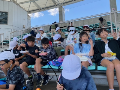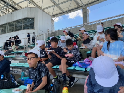 イルカショーの後は、弁当タイムです。おいしそうに食べています。