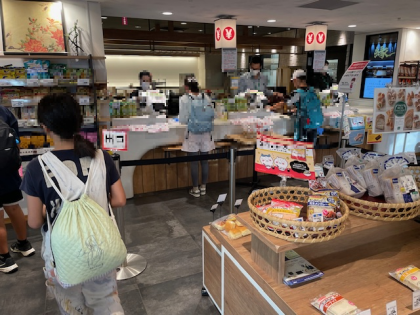 家族の人一人一人の顔を思い浮かべながら、真剣にお土産選びをしています。