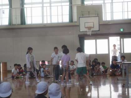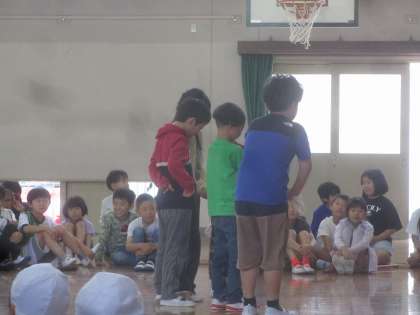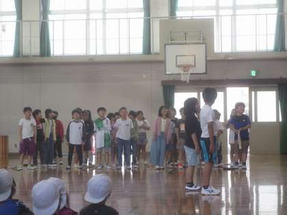 3年生は、掃除の仕方について教えてくれました。間違った掃除の仕方をしているときに,「おそうじ名人〜〜!!」とみんなが呼ぶと、「はーい」とおそうじ名人がとんできて、正しい掃除の仕方を教えてくれます。教室や学校が美しいととっても気持ちがいいね。おそうじ名人ありがとう!!