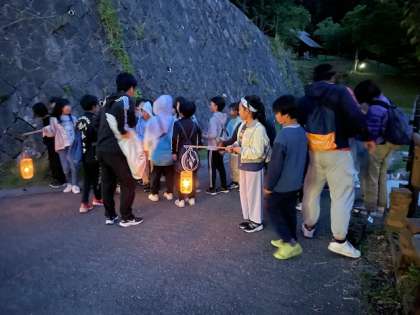 グループごとに「ろうそくの明かり」を頼りにナイトハイクに出発です。