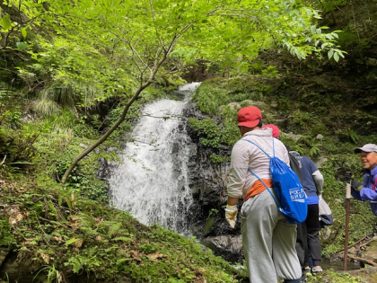 最後に大きな滝が子どもたちを迎えてくれました。全員で滝までたどり着くことができました。